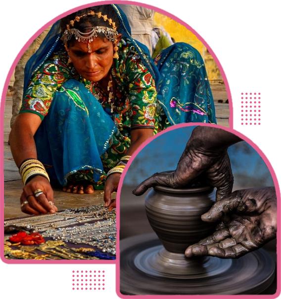 Nossa missão é curar produtos lindamente elaborados de todo o mundo. Preservamos as artes tradicionais indianas passadas por nossos ancestrais, ajudando nossos talentosos artesãos a ganhar reconhecimento global através de produtos que podem ser usados diariamente no mercado urbano. Nossa visão é nos tornarmos uma marca internacional sinônimo de artesanato. Estamos no caminho certo com o importante objetivo de garantir o desenvolvimento econômico dos artesãos rurais engajados na preservação do patrimônio das indústrias caseiras na Índia.